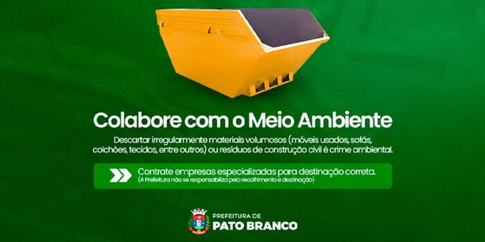A Prefeitura de Pato Branco, por meio da Secretaria Municipal de Meio Ambiente, reforça que o descarte de resíduos de construção civil (RCC) e volumosos (descarte de móveis, sofás, colchões, tecidos) ao lado de contêineres, em frente a residências ou em vias públicas deve ser evitado, pois configura crime ambiental. Com as novas diretrizes, em…