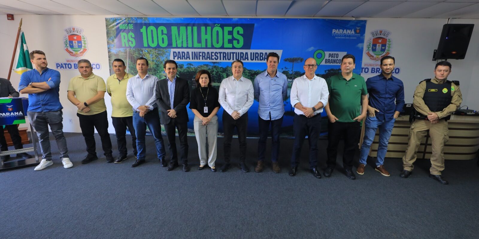 O anúncio aconteceu no Auditório do Largo da Liberdade, em Pato Branco, com a presença do secretário de Estado das Cidades, Guto Silva, além de deputados estaduais e federais que acompanham os investimentos no município.