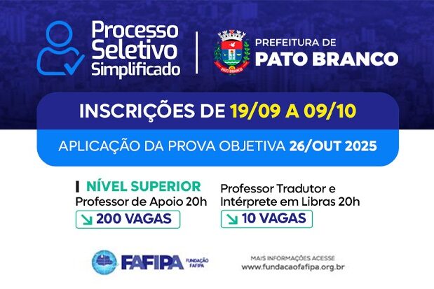 A Prefeitura de Pato Branco disponibilizou o Edital 001/2025 – Processo Seletivo Público para a…