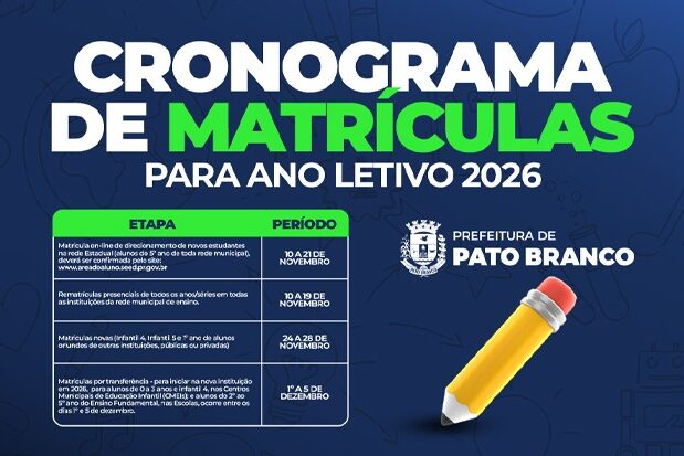 A Prefeitura de Pato Branco, por meio da Secretaria Municipal de Educação e Cultura, divulga…