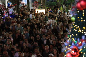 Após as apresentações, foram acesas as luzes da decoração da Praça Presidente Vargas, abrindo também o espaço temático ao lado da Igreja, com áreas decoradas e a Casa do Presépio, preparada para visitação.