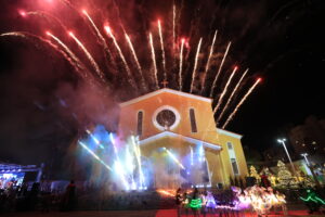 E, em um dos momentos mais aguardados pelas crianças, o Papai Noel fez sua chegada pela porta principal da Igreja, acompanhado de personagens natalinos que trouxeram ainda mais magia, fantasia e alegria às famílias presentes. A noite também contou com queima de fogos, celebrando oficialmente a abertura da temporada natalina.