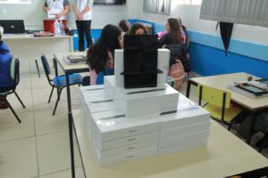 A Escola Municipal Juvenal Cardoso recebeu nesta terça-feira (28), 30 novos tablets do Projeto Letramento Digital, iniciativa desenvolvida pela Secretaria Municipal de Educação e Cultura em parceria com o Ministério da Ciência, Tecnologia e Inovação (MCTI), por meio do programa MCTI Futuro.