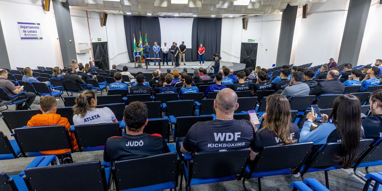 O ato simboliza o compromisso da administração municipal com o fortalecimento das entidades esportivas de Pato Branco e também formaliza os pagamentos dos recursos, que contemplam modalidades individuais e coletivas pato-branquenses.